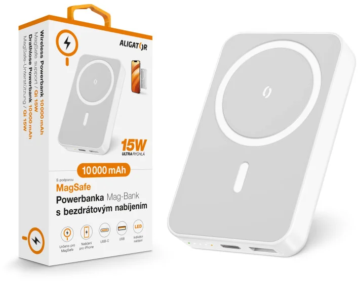 - Aligator Mag-Bank, 10 000 mAh, bílá