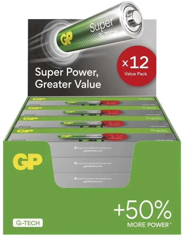 Vylepšená řada GP alkalických baterií SUPER přináší nárůst výkonu a nepřetržitého provozu až o 50 % oproti ostatním běžným alkalickým bateriím, čímž jsou ideální volbou pro dlouhé chvíle strávené s rodinou a další aktivity, které vyžadují spolehlivý zdroj energie.
