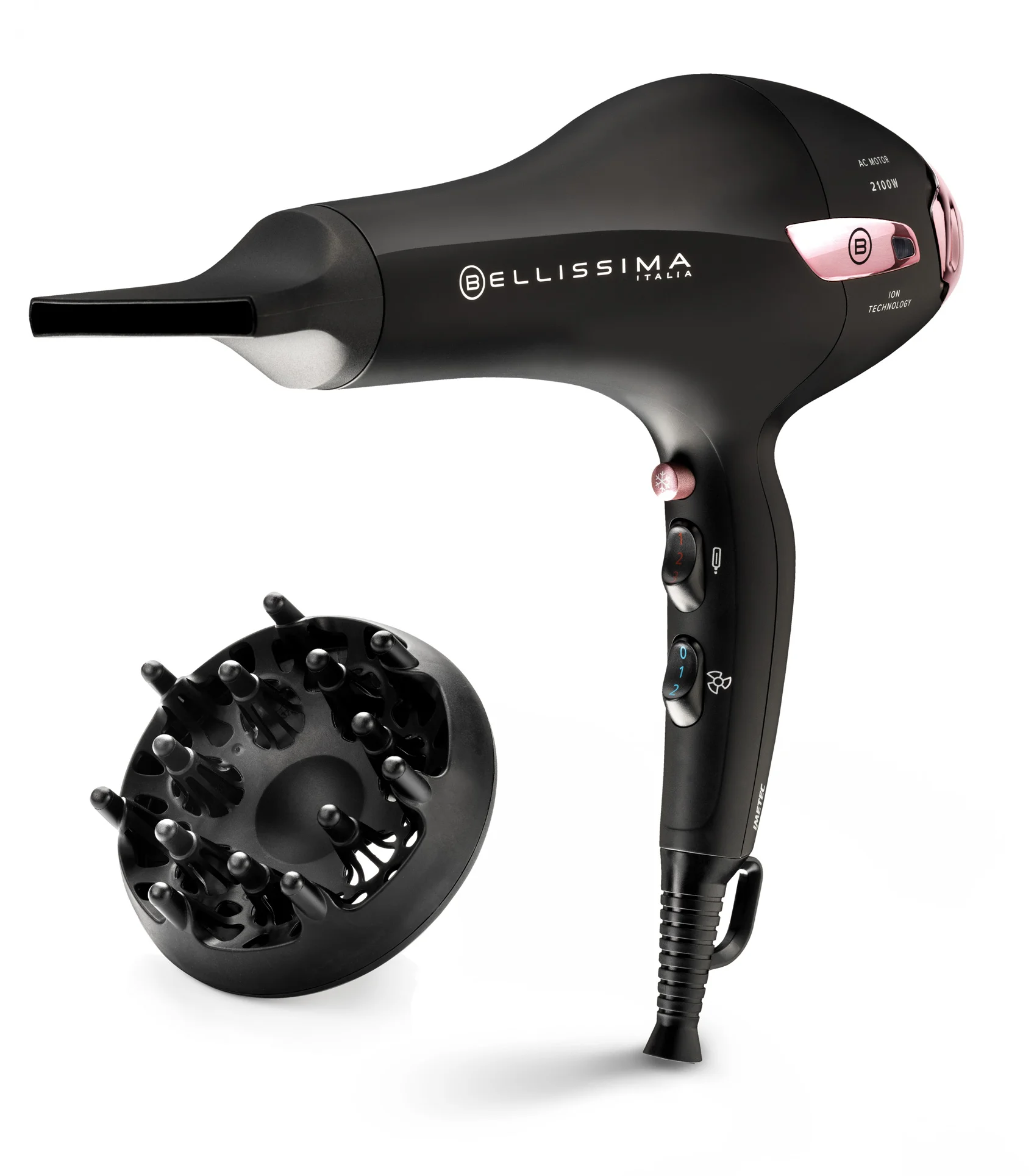 - profesionální ac motor zajišťuje dlouhou životnost fénu a vysoký výkon vzduchového proudu