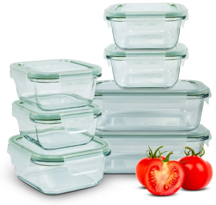 Sada 7 nádob na čerstvé potraviny ve 4 praktických velikostech pro všestranné použití. Vysoce kvalitní skleněné nádoby: odolné vůči skvrnám, pachům a korozi. Ideální pro mrazení, ohřev, skladování a přepravu potraviny, jako jsou jídla, omáčky, zelenina, ovoce, vafle a dětská výživa. Objem: 2x 1040 ml + 1x 800 ml + 2x 520 ml + 2x 370 ml. Praktický 4násobný Click & Safe uzávěr a vysoká kvalita silikonové těsnění ve víku. Snadná manipulace. Dlouhotrvající svěžest. Dlouhotrvající aroma. Parní ventil ve víku (znovu uzavíratelný). Rovnoměrný a rychlý ohřev jídla v mikrovlnné troubě s otevřeným ventilem. Skleněnou nádobu lze umístit do mikrovlnné trouby s víky (ochrana proti stříkající vodě). Teplotní odolnost od –40 do +400 °C