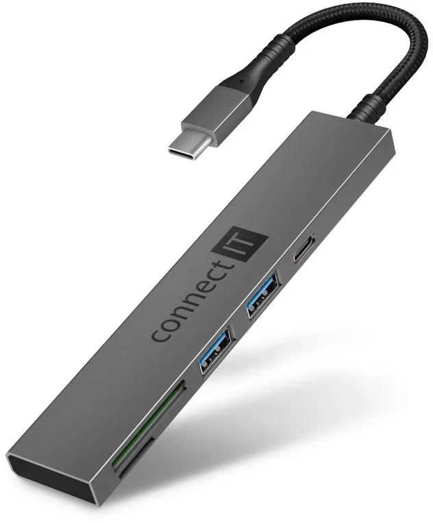 - CONNECT IT CompactPRO USB-C hub + čtečka karet, (2xUSB-A 3.0, 1xUSB-C), externí, antracitový