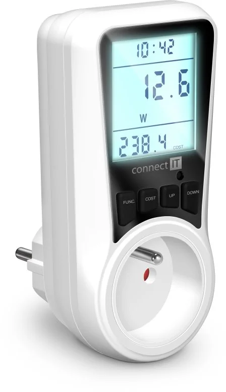 Digitální měřič CONNECT IT "PowerMeter Pro" s jednoduchým designem slouží k měření spotřeby elektrické energie různých domácích spotřebičů. Měřič disponuje velkým podsvíceným LED displejem a jednoduchým ovládáním. Díky tomu je velmi přehledný a spolehlivý.