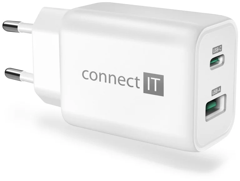 - CONNECT IT Wanderer2 GaN nabíjecí adaptér 1×USB-C + 1xUSB-A, 33W PD, bílá