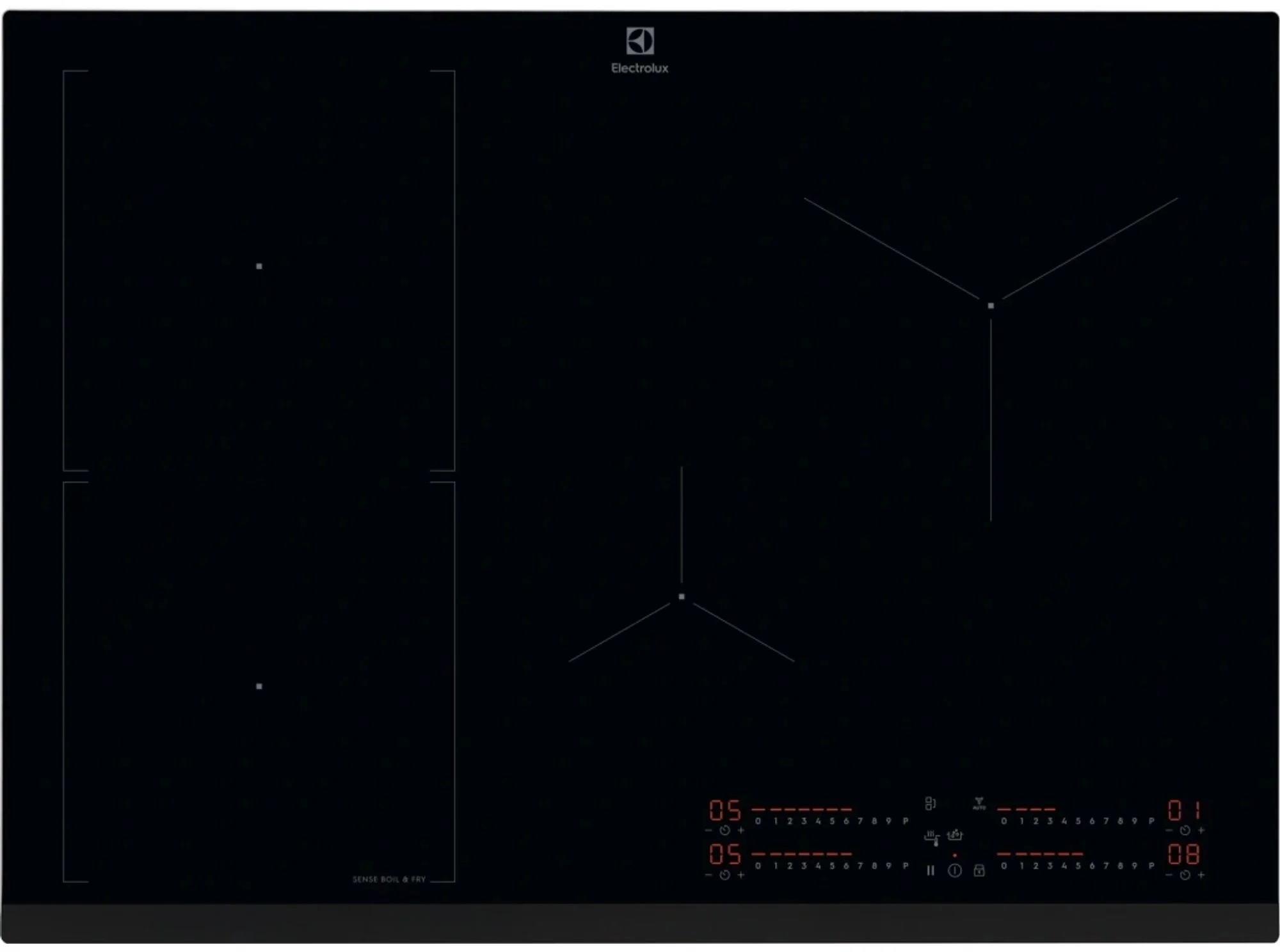 Kontrolní funkce: 3 krokové využití zbytkového tepla, akustický signál, funkce POWER (Booster) = rychlé ohřátí, dětský zámek, Eco časovač (využití zbytkového tepla), flexibilní Power Management, Heat memory, propojen s odsavačem Hob2Hood, Samostatné ovládací zóny, zajištění/odjištění ovládacího panelu, Levý Bridge, minutka, pauza, SenseCook Boil, SenseCook Fry, vypnutí zvuku