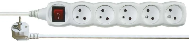 Bílý prodlužovací přívod, 5 zásuvka s vypínačem, délkou 2 m a průřezem vodiče 1 mm2. Vhodný pro maximální zátěž 10 A max. Prodlužovací přívod 2 m na 230 V~ slouží k prodloužení elektrické energie tam, kam pevná zásuvka nedosáhne.