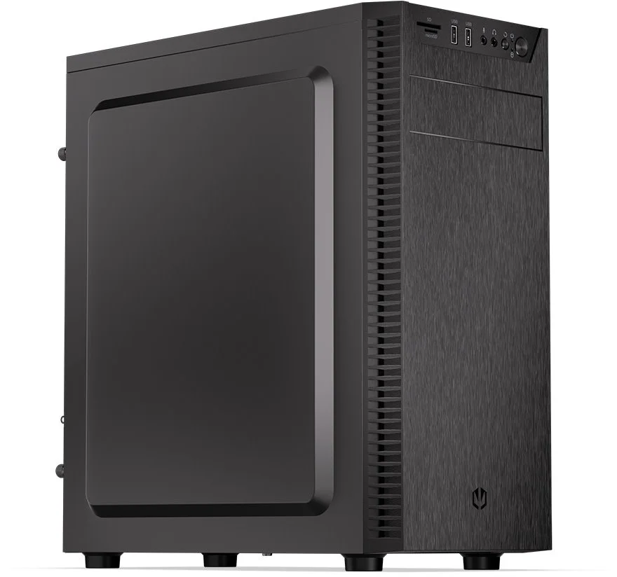Skříň formátu Middle Tower nabízí čtyři 2,5", jednu 3,5", jednu kombinovanou 2,5"/3,5" pozici pro pevné disky a dvě 5,25" pozice, z nichž jedna je externě přístupná. Na přední části se nachází dva USB 3.0 porty, sluchátkový výstup, audio vstup pro mikrofon a čtečka microSD a SD paměťových karet. Vybavena je jedním 120mm ventilátorem na zadní straně, který zajišťuje dostatečné proudění vzduchu.