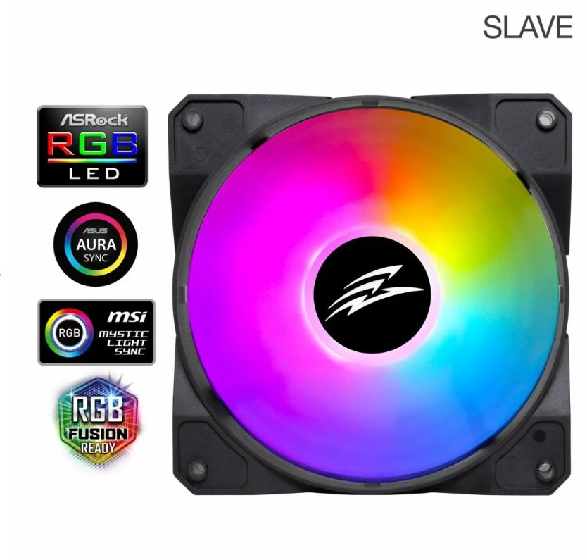ARGB LED ventilátor typu rainbow s LED diodami. Ventilátor umožňuje najednou zobrazit všech sedm barev duhového spektra. Jedná se o kontrolní ventilátor, který je určen pro použití s ventilátorem EVOLVEO 12FM. LED osvětlení je ovládáno pomocí tlačítka reset nebo LED tlačítka na ovládacím panelu skříně nebo připojením přiloženého ARGB kabelu k základní desce.