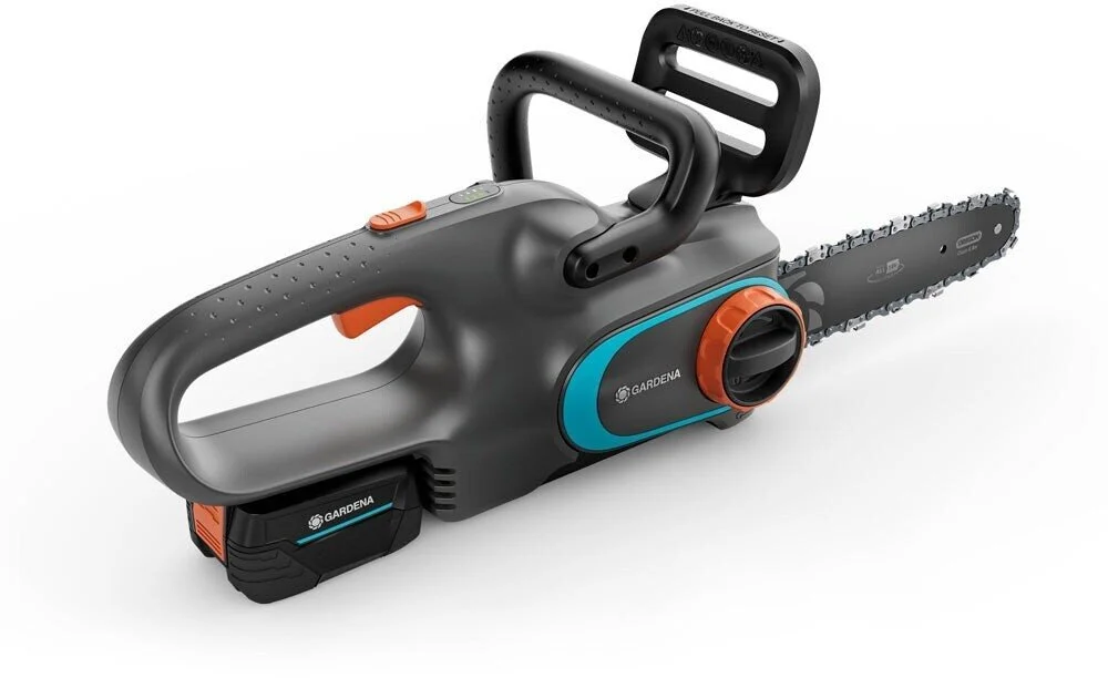 Získejte výkonný a přesný řez s GARDENA akumulátorovou řetězovou pilou s akumulátorem 18V.