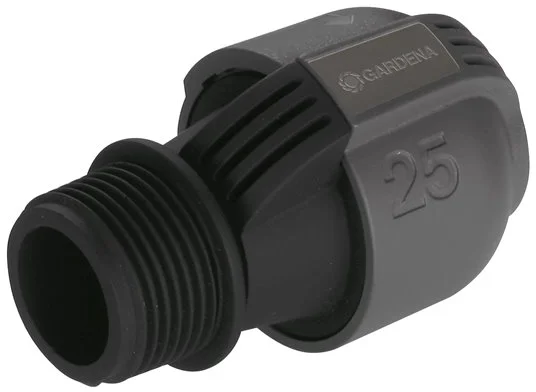 Jako součást GARDENA Sprinklersystému slouží spojka 25 mm s 1" vnějším závitem od společnosti GARDENA ke snadnému připojení potrubí k zavlažovacím ventilům od společnosti GARDENA (č.v. 1278-20 nebo 1251-20). Pomocí spojky lze zavlažovací systém také přímo připojit k domácímu přívodu vody. Patentovaná technologie snadného připojování Quick&Easy umožňuje rychlé sestavování nebo rozebírání potrubí bez nářadí jednoduchým otočením našroubovaného šroubení o 140°. Pro vodotěsné spojení a bezpečný provoz je šroubové spojení spojky samotěsnící.