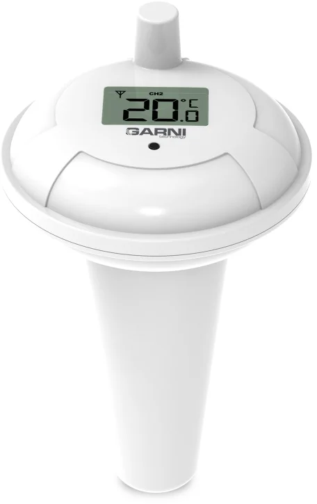 Tříkanálové bazénové bezdrátové čidlo pro měření teploty, určeno pro digitální teploměr s bazénovým čidlem GARNI 245P a meteorologické stanice GARNI 612 Precise, GARNI 615W Precise, GARNI 615B Precise, GARNI 618W Precise a GARNI 618B Precise, Důrazně nedoporučujeme použití v mrazu.