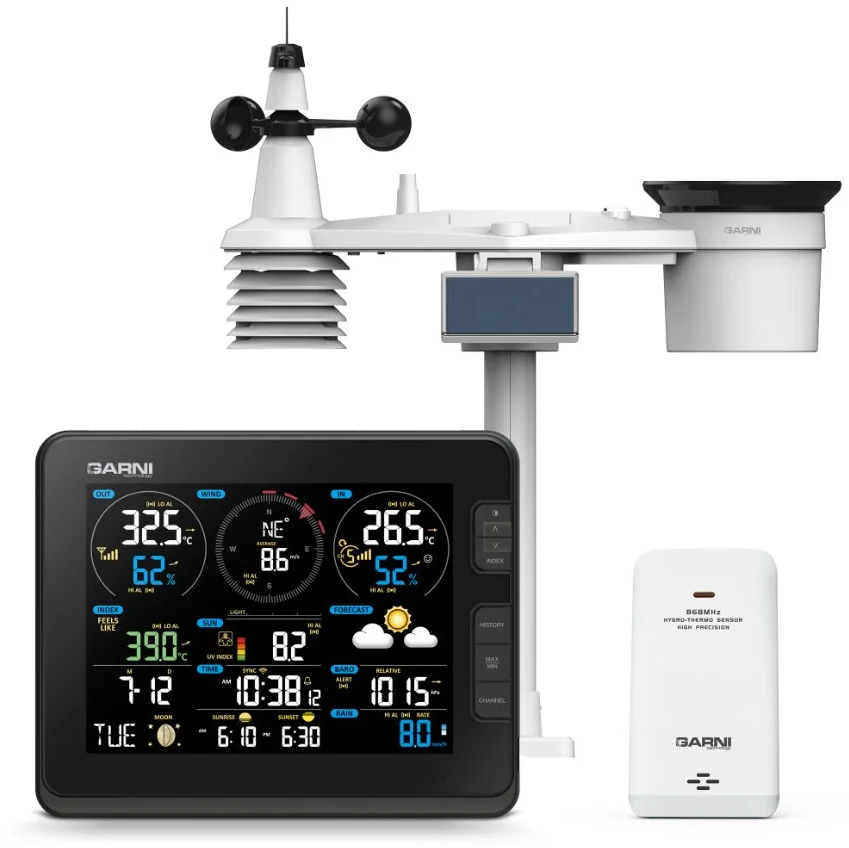 Poloprofesionální Wi-Fi meteorologická stanice model GARNI 2055 Arcus 2GEN s integrovaným bezdrátovým čidlem 7-v-1 se solárním panelem a vestavěným kapacitorem, která je vybavena mnoha funkcemi shromažďuje přesné a podrobné údaje o počasí. Integrované bezdrátové čidlo GARNI 1NG pracuje na frekvenci 868 MHz a měří vnitřní/vnější teplotu a relativní vlhkost, rychlost a směr větru, dešťové srážky, barometrický tlak, UV index a intenzity slunečního záření. Výrobek používá vysoce přesná švýcarská čidla SENSIRION a umožňuje kalibraci některých meteorologických veličin.