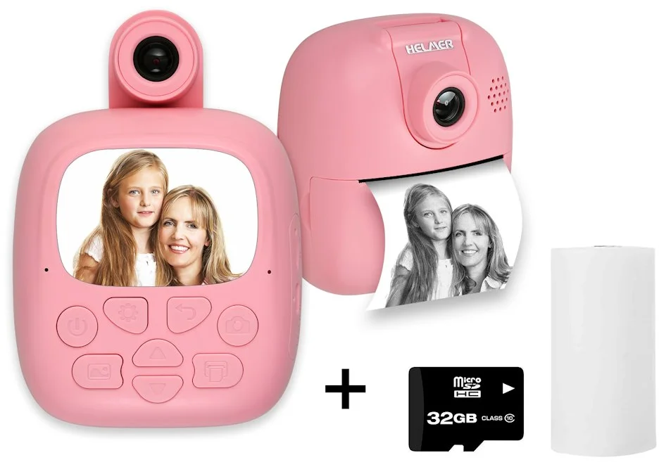Helmer TP 02 kombinuje funkci digitálního fotoaparátu a vestavěné tiskárny. Umožuje fotit a okamžitě tisknout pořízené fotografie. Navíc dokáže i přehrát zvukové soubory MP3. Funkčnost tiskárny spočívá v technologii termotisku, která umožňuje rychlé a jednoduché vytváření snímků na roli papíru při velmi nízkých tiskových nákladech. Ovládání je velmi jednoduché díky 2" displeji s tlačítky na zadní straně. Kamera poskytuje různé filtry, rámečky a další grafické efekty, které děti mohou přidat ke svým fotografiím. Kromě toho nabízí i možnost zahrát si pět jednoduchých a zábavných her. Napájena je pomocí 1200 mAh baterie, která je jednoduše nabíjena pomocí USB-C portu.