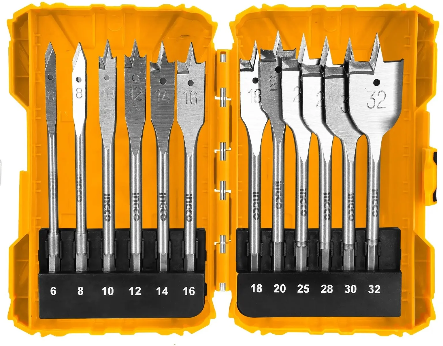 - Ingco AKDL1201 Vrtáky do dřeva ploché, sada 12ks, O 6-32x152mm