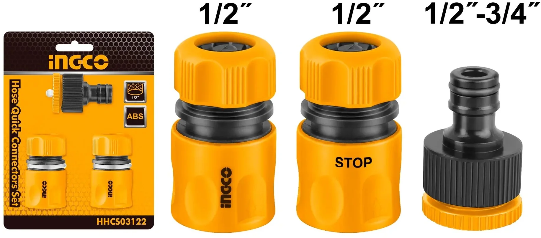 Ingco HHCS03122 Spojka hadicová 1/2" 2ks + mezikus 1/2" -3/4" plast