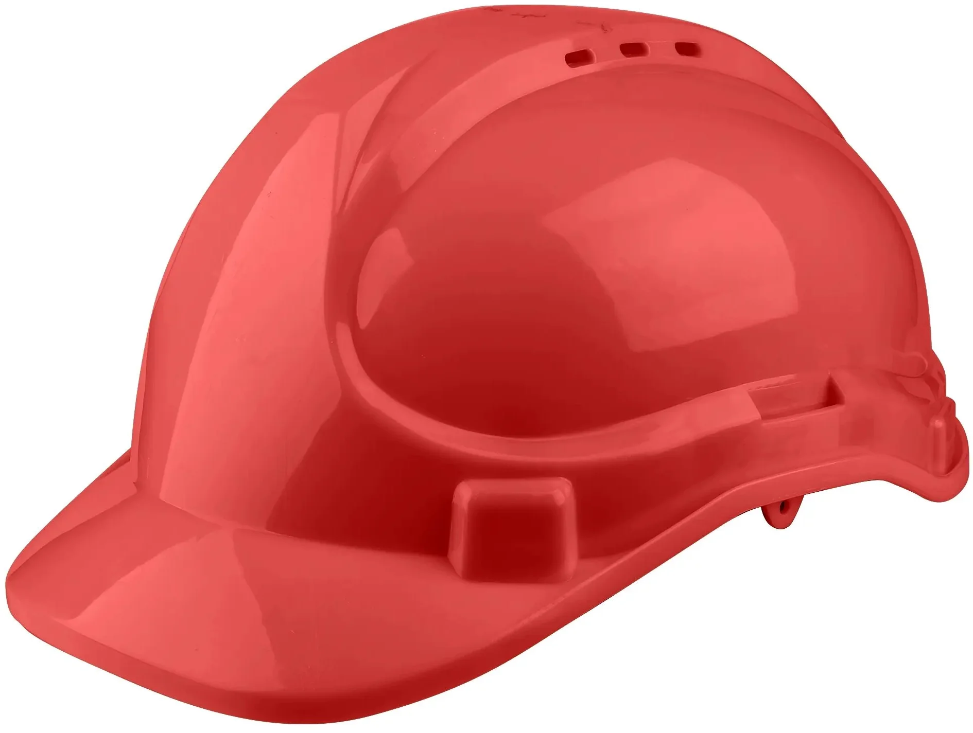 Přilba ochranná červená, plast, PE skořepina s větracími otvory, řemínek pod bradou, 8 bodové zavěšení, lze upravit velikost pomocí přezky, hmotnost 330g