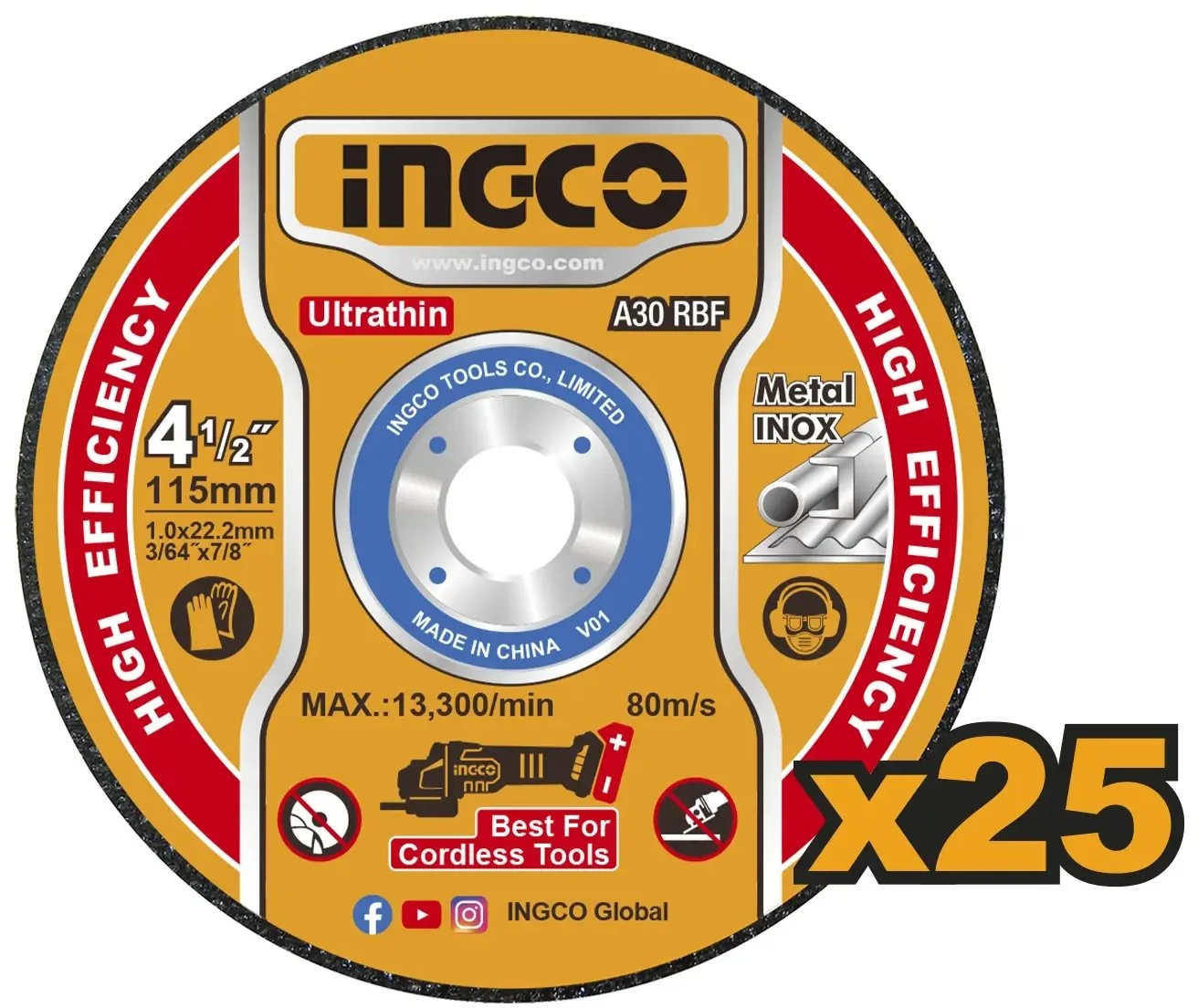 - Ingco MCD11011525 Kotouč řezný kov 115 x 1,2 x 22,2 mm, sada 25ks