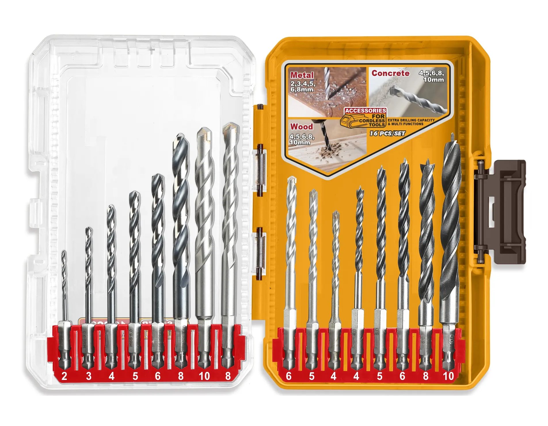 Sada 16 ks vrtáků na kov, zdivo a dřevo se šestihrannou stopkou