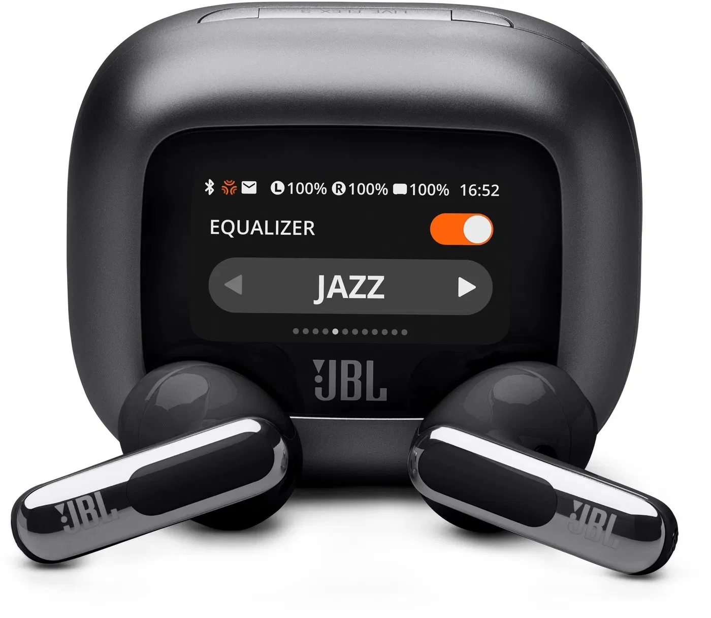 Pomocí 1,45" dotykového displeje na nabíjecím pouzdře Smart Charging Case™ si můžete přizpůsobit vaše sluchátka JBL Live Flex 3 do posledního detailu. Displej vám poskytuje plnou kontrolu nad vaším zvukem na jakémkoli zařízení – notebooku, TV, telefonu nebo tabletu – aniž byste museli použít aplikaci na vašem telefonu.