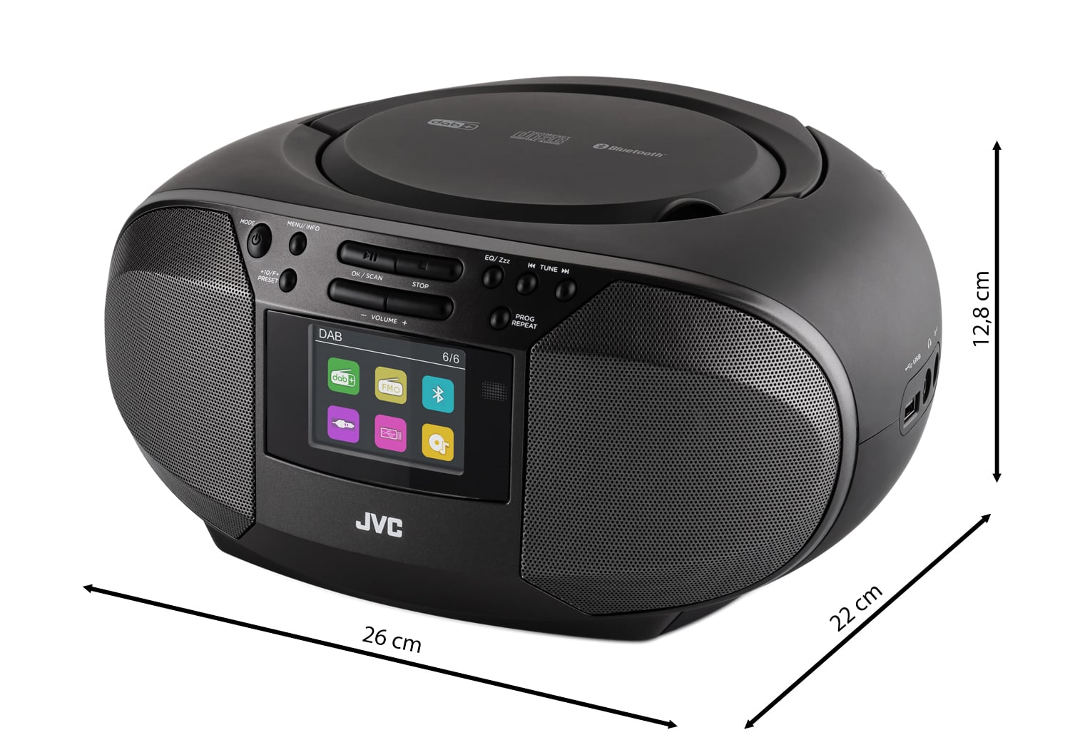 Hledáte přenosný přehrávač s?bohatou nabídkou funkcí? Tento model JVC vám umožní přehrávat oblíbenou hudbu i rádia v?té nejlepší kvalitě. Disponuje digitálním DAB+/FM tunerem pro širokou škálu stanic s čistým digitálním příjmem. Díky automatickému ladění a možnosti uložit si oblíbené stanice nebudete muset ladit stále znovu.