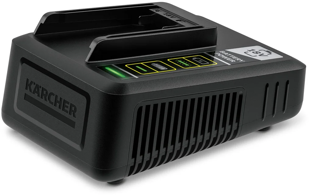 Nabije vyměnitelnou baterii 18 V / 2,5 Ah Kärcher Battery Power za 44 minut na 80 %. Nabije vyměnitelnou baterii 18 V / 5,0 Ah Kärcher Battery Power za 94 minut na 80 %.