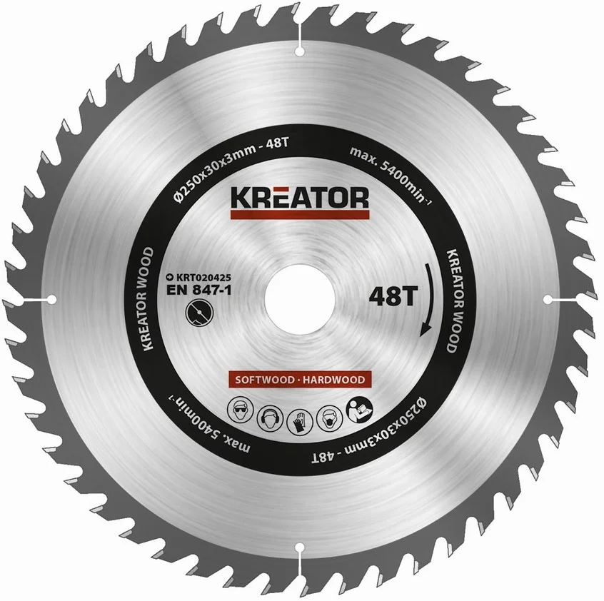 - Kreator KRT020425 - Pilový kotouč na dřevo 250mm, 48T