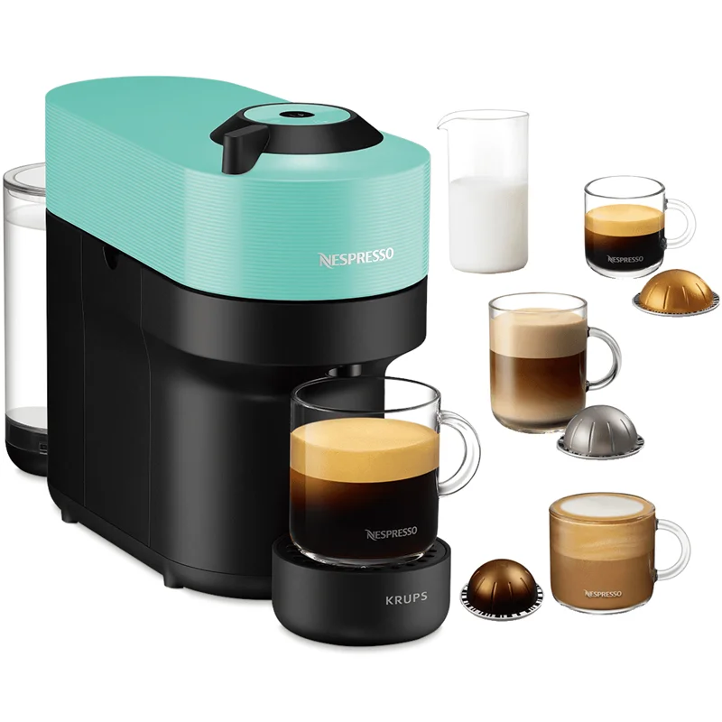 Vertuo Pop disponuje technologii čtení kódů z obalu kapsle a možnosti použití čtyř velikostí kapslí, a tak s ním snadno připravíte velkou kávu (230 ml), velké lungo (150ml), dvojité espresso (80 ml) a samozřejmě i klasické espresso (40 ml).