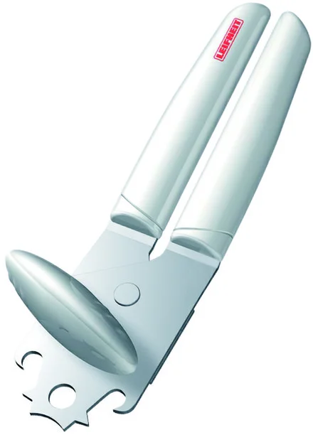 Otvírák Exact značky Leifheit včetně otvíráku na lahve, z odolného bílého plastu.