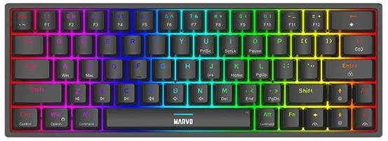 Styl a atmosféra jsou klíčové prvky každého herního koutku. Marvo Shogo 63 je vybavena živým RGB podsvícením, které dodá vašemu hernímu setupu jedinečný vzhled. Možnost přizpůsobit si osvětlení umožňuje měnit barvy, přechody i efekty přesně podle nálady nebo typu hry, kterou právě hrajete. Vytvořte si futuristickou světelnou show, která dokonale doplní váš herní styl. Nezáleží na tom, zda preferujete jemné ambientní podsvícení nebo dynamické pulzující efekty – s touto klávesnicí si nastavíte přesně to, co vám vyhovuje.