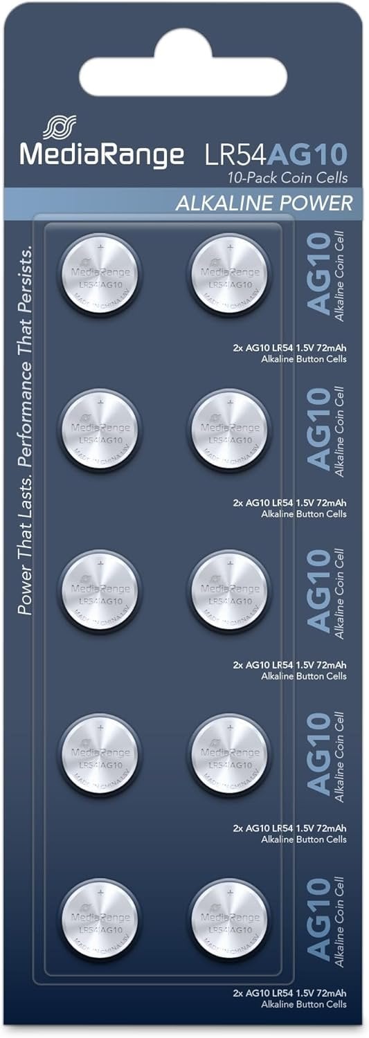 MediaRange Premium Alkaline Coin Cells, AG10 |LR54| 1.5V, Pack 10
