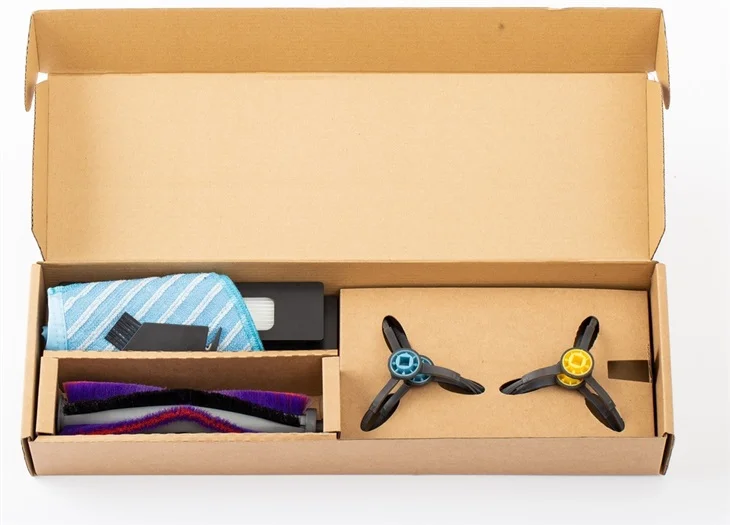 Boční kartáč 2 páry, Čistící kartáček 1 ks, HEPA 2 ks, Mopovací textílie 1 ks, Hlavní kartáč 1 ks