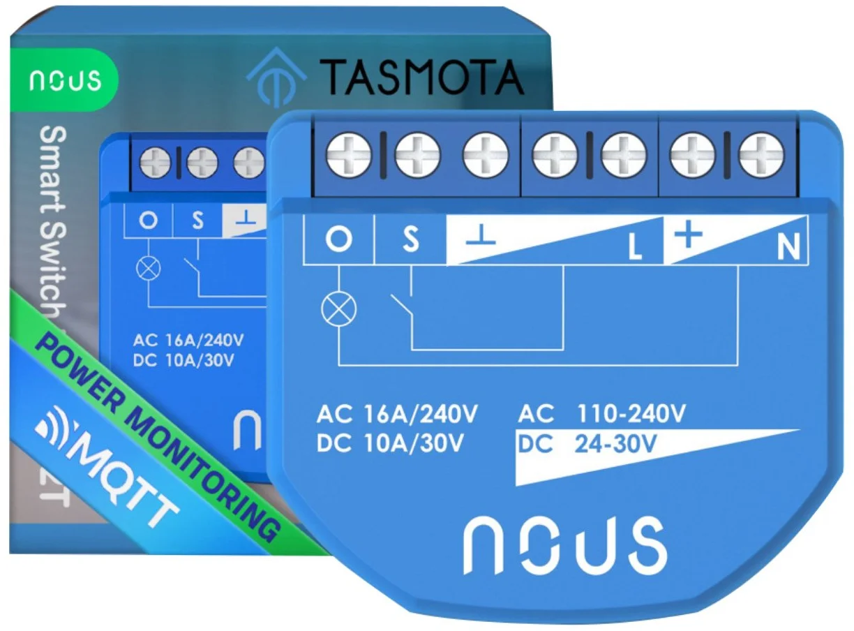 Chytrý vypínač NOUS B2T s nainstalovaným otevřeným softwarem Tasmota je určen k organizování automatického a ručního vypínání elektrických spotřebičů v místnosti prostřednictvím vzdáleného přístupu přes Wi-Fi síť, pomocí chytrého telefonu nebo z osobního počítače přes webového rozhraní. Komunikace s přepínačem se konfiguruje přes Wi-Fi síť, k čemuž slouží bezdrátový Wi-Fi adaptér. Vypínač je vybaven mechanickým tlačítkem a světelnou indikací stavu zařízení. Zařízení je vybaveno elektromechanickým relé a podporuje protokol Matter .