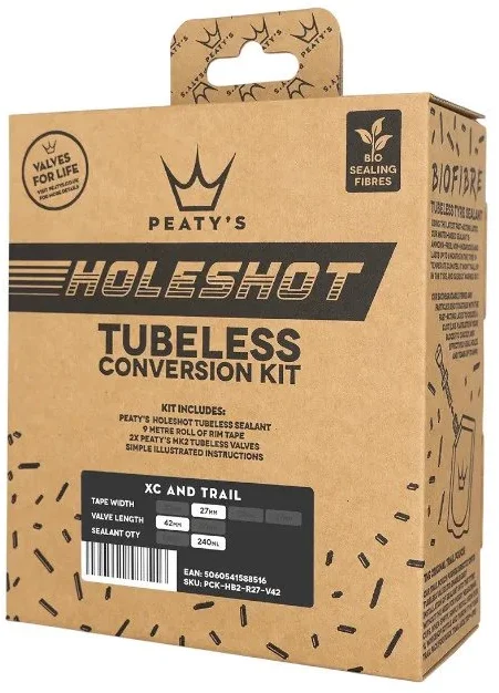 - Obsahuje pásku na ráfek Peaty's Holeshot, bezdušové ventilky MK2 a bezdušový tmel Holeshot