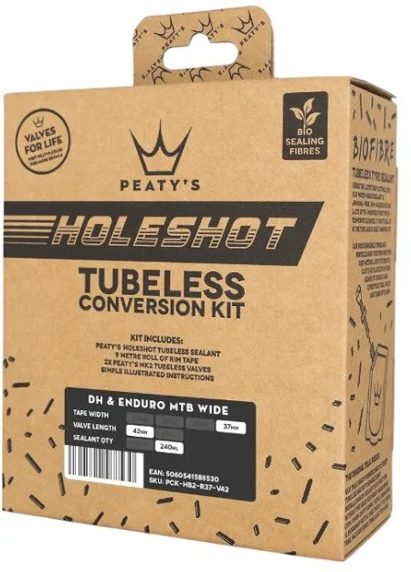 - Obsahuje pásku na ráfek Peaty's Holeshot, bezdušové ventilky MK2 a bezdušový tmel Holeshot