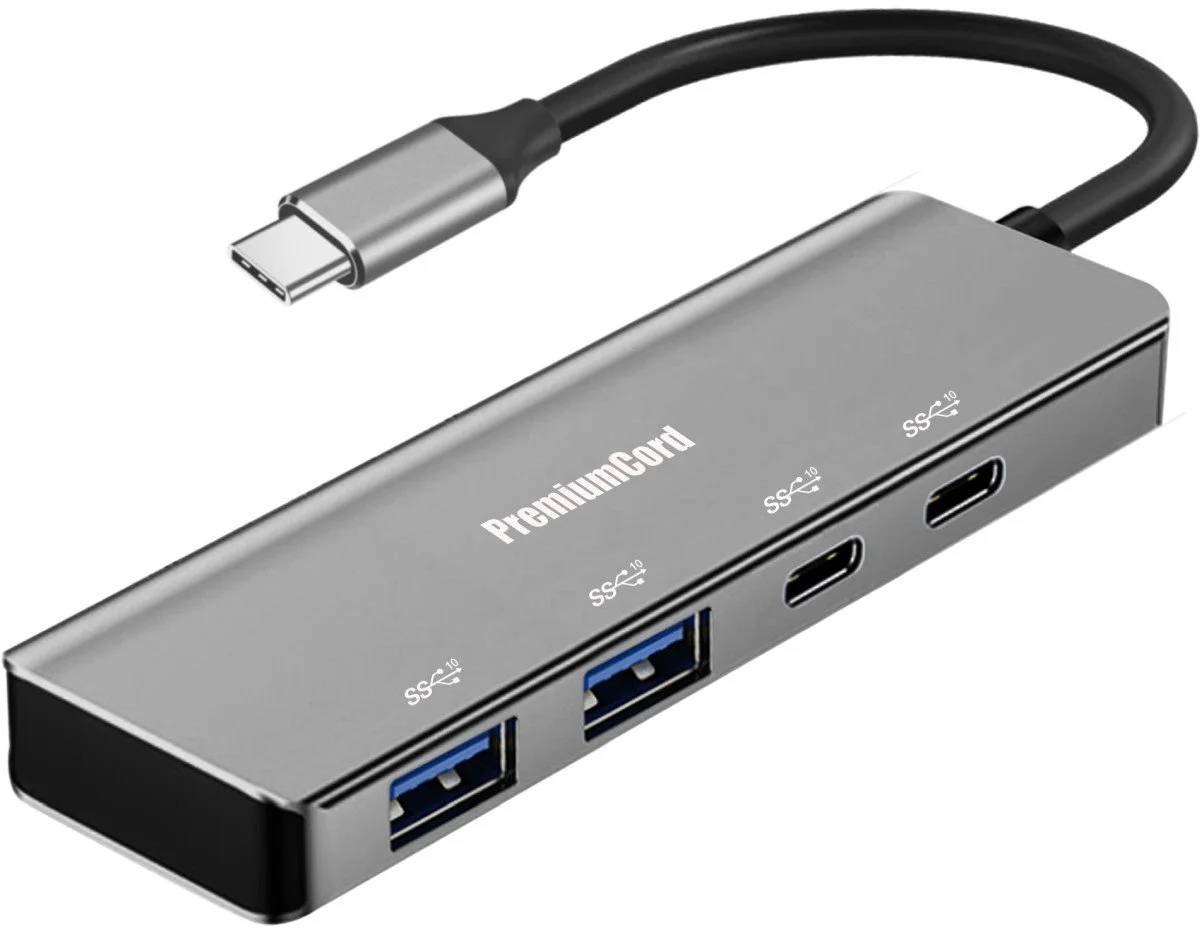 - PremiumCord 10G SuperSpeed Hub USB-C na 2x USB 3.2 C +2x USB 3.2 A, Aluminum