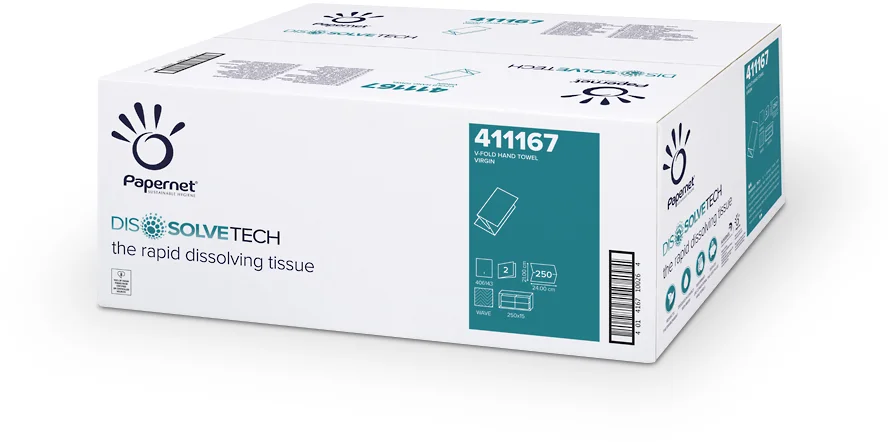 Dvouvrstvé skládané papírové ručníky, které mohou být po použití vhozeny do WC, kde se díky technologii DissolveTech zcela rozpustí.