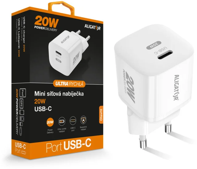 - Rychlá nabíječka ALIGATOR Mini, PD 20W USB-C, bílá