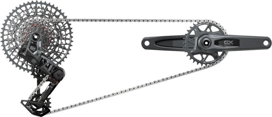- V balení: přehazovačka GX Eagle Transmission, kazeta GX Eagle Transmission, řetěz GX Eagle Transmission Flattop, ovladač Pod, baterie AXS a nabíječka, kliky nebo převodník dle specifikace.