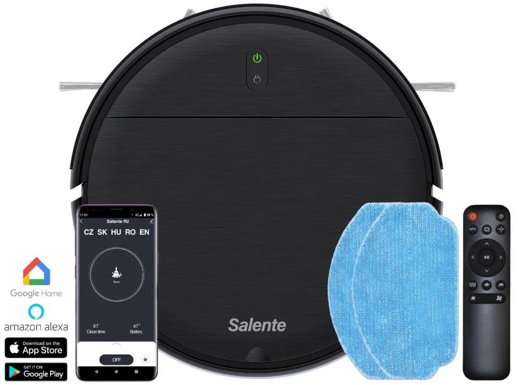 Vysavač Salente R2 s elektronicky řízeným dávkováním vody vysaje a vytře celý váš byt a ještě se poté sám automaticky nabije. Vysavač můžete ovládat pomocí mobilní aplikace v českém jazyce, nabízí čtyři režimy úklidu a je vybaven kvalitní filtrací s HEPA filtrem.