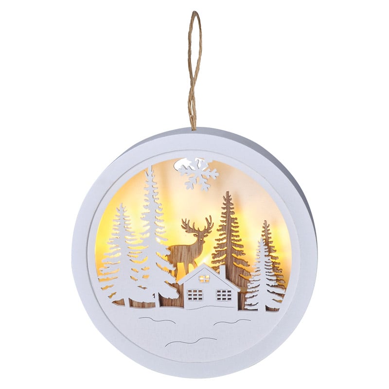 Solight LED dekorace závěsná, les a jelen, bílá a hnědá, 2x AAA