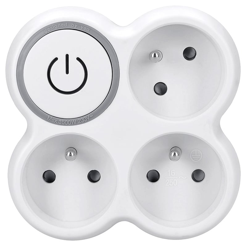 - Solight rozbočka, 3x 10A, bílá-šedá, vypínač
