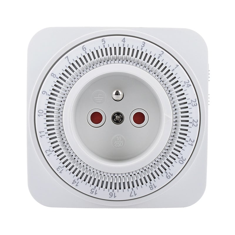 Spínací hodiny mají zabudovanou dětskou pojistku, která zabraňuje strčení kovových předmětů do dírek zásuvky. Na boku zařízení je přepínač. Tím můžete časový spínač deaktivovat. Stává se z něj pak klasická zásuvka a přístroj se zapne i mimo nastavenou dobu.