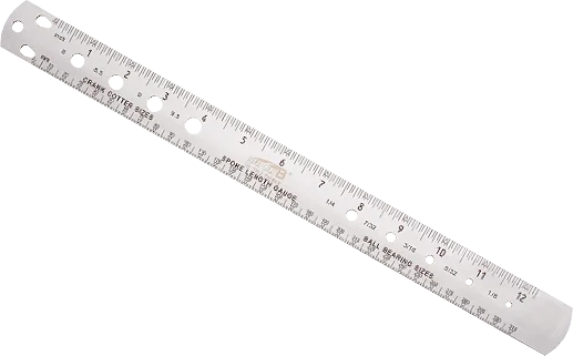 Měrka pro měření velikosti běžných dílů jízdních kol.