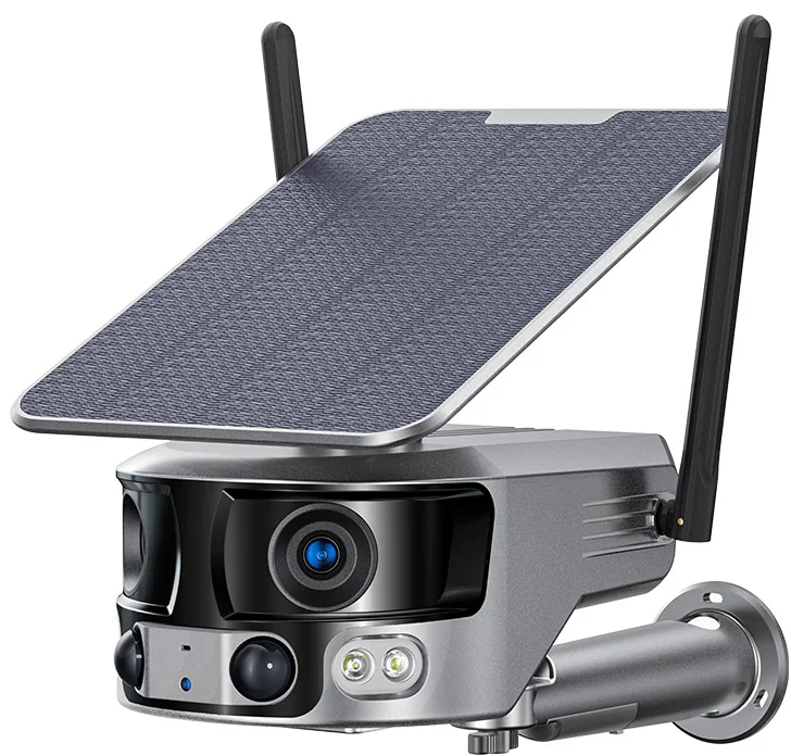 Solární 4K kamera Viking PRIME WiFi, která disponuje panoramatickými čočkami s 180° úhlem pohledu, IP66 ochranou (platí pouze v případě, že jsou všechny vstupní i výstupní konektory zakryté např. silikonovým ochranným krytem), PIR čidlem, detekcí lidského pohybu a nočním viděním. Ke kameře je také možno připojit výkonný solární panel, díky kterému je kamera nezávislá na elektrické síti.